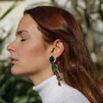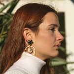 Inspirados en la planta de la belladona, la luna y su influjo. Asimétricos. Piezas cortadas, lijadas y barnizadas a mano. El palillo es de plata. Muy ligeros.