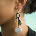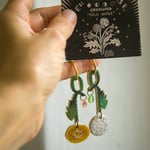 Pendientes de madera, el tallo y la hoja van recubiertos con una capa de resina, gota de vidrio, detalles de estrellas pintados a mano en varias capas para dar profundidad.
