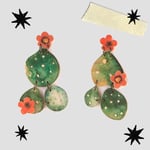 Pendientes realizados en madera en forma de chumbera. Son muy ligeros. La chumbera es un tipo de cactus con una historia milenaria. Todas las piezas han sido cortadas, lijadas y barnizadas a mano y eso se nota en el cariño y la energía que portan con sí nuestras piezas. Resultan ideales para acompañar un look retro y muy original.